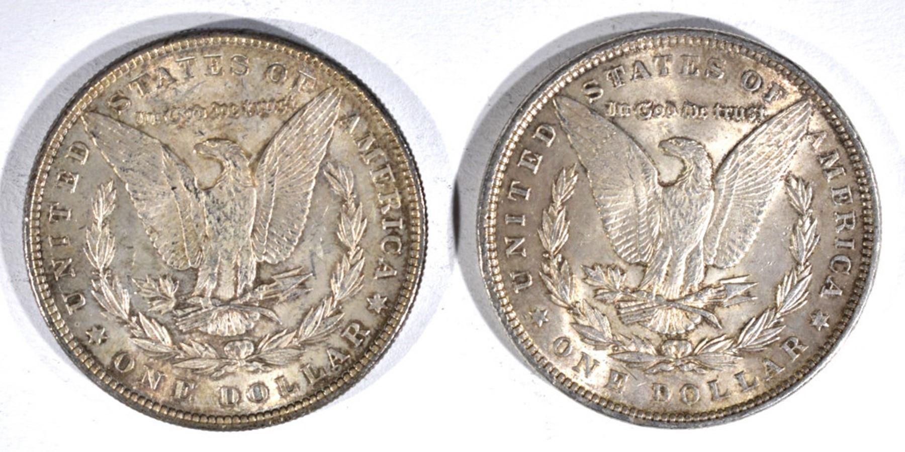 1885 & 1889 MORGAN DOLLARS CH BU, BOTH TONED