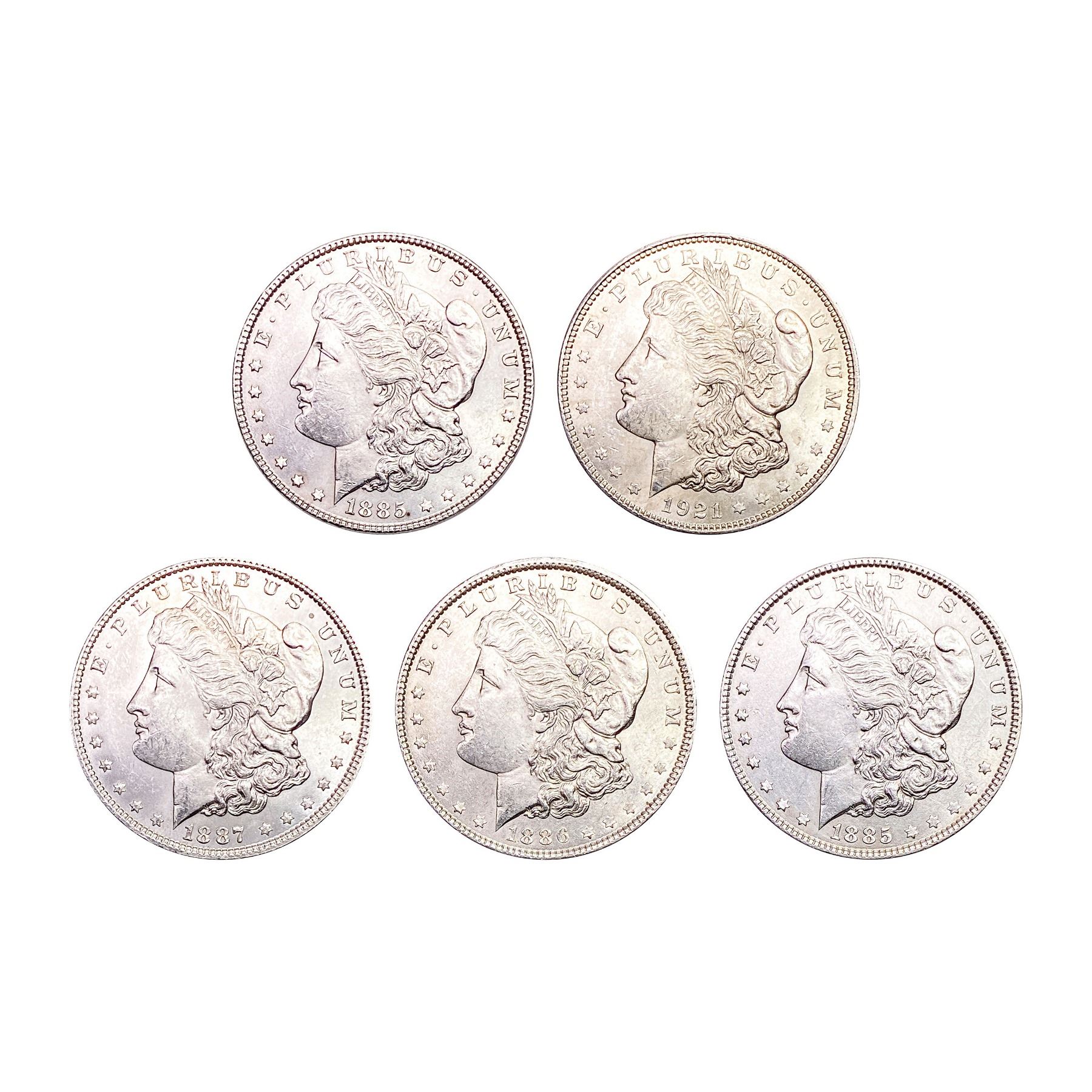 1885-1921 UNC Morgan Silver Dollars [5 Coins]