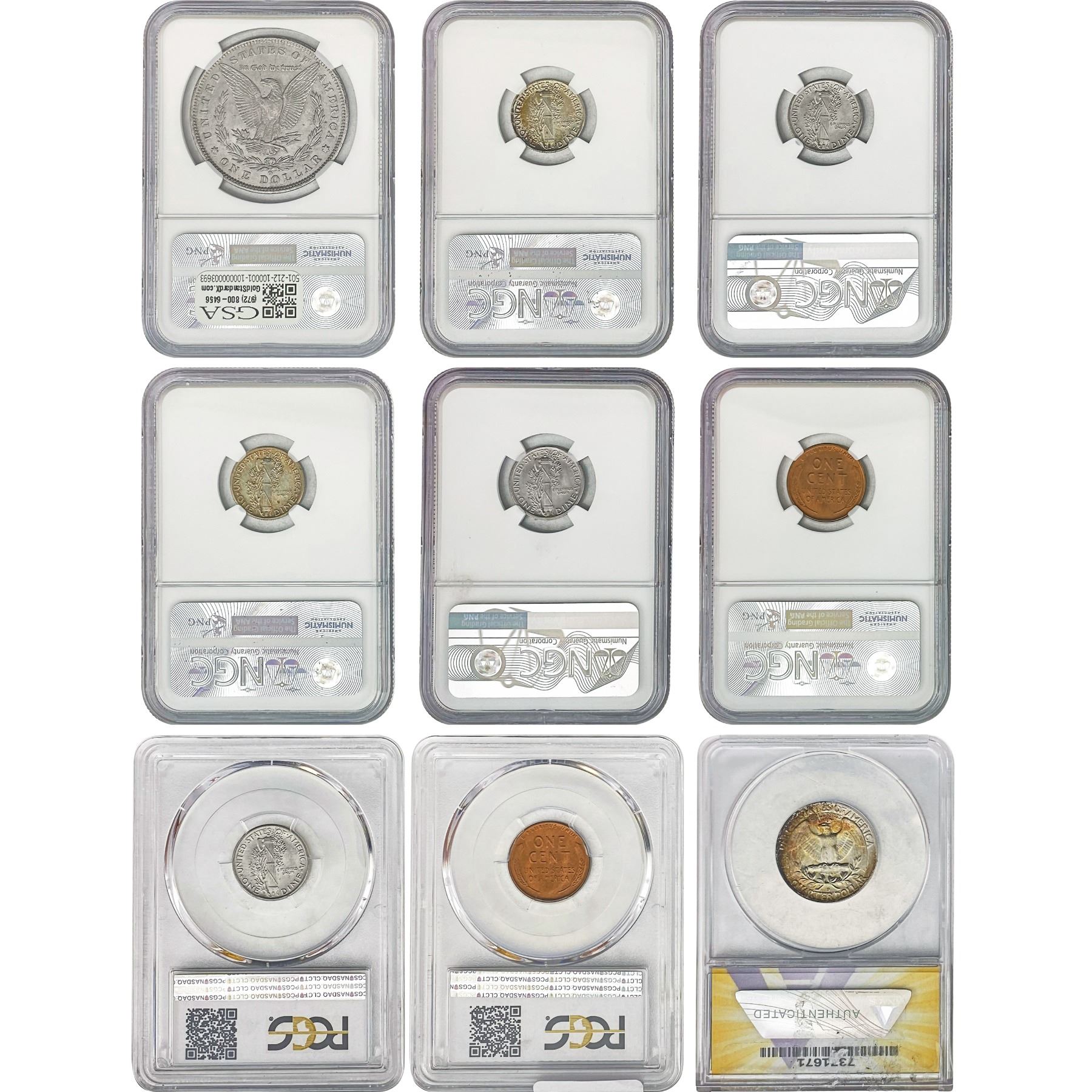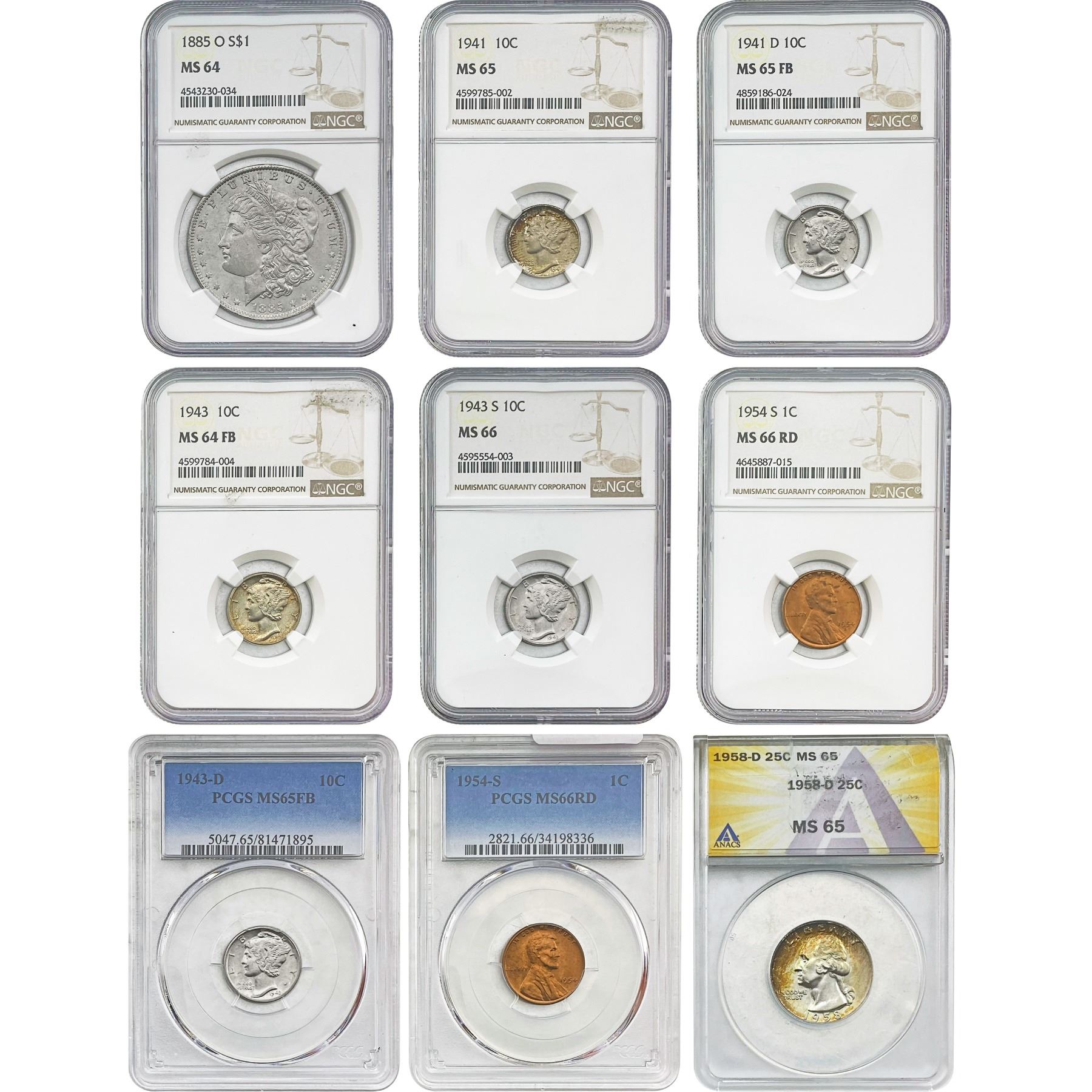 1885-1958 Gem BU Graded US Type Coin Lot [9 Coins] PCGS/NGC/ANACS MS64-66
