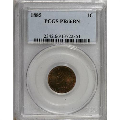 <B>1885 1C PR66 Brown PCGS.</B></I> PCGS Population (40/8). NGC Census: (42/10). Mintage: 3,790. Numismedia Wsl. Price for NGC/PCGS coin in PR66: $525. (#2342)<BR><BR><B>Coin Engraver:</B> James B. Longacre<BR><BR><b>Shipping:</b> Coins & Currency (<a target="_blank" href="http://www.heritageauctions.com/common/shipping.php">view shipping information</a>)