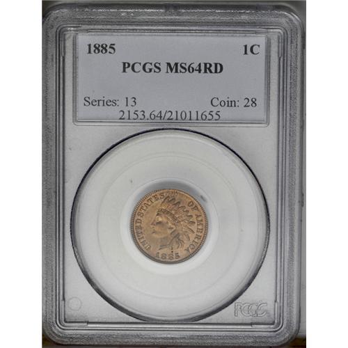 <B>1885<1C> MS64 Red PCGS.</B></I> This example has the typical appearance of mid-1880s Indian cents with deep orange-lilac color and satiny luster.