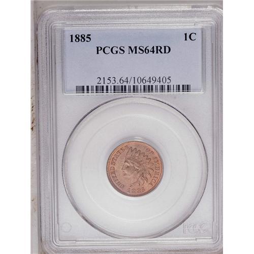 <B>1885<1C> MS64 Red PCGS.</B></I> Well struck with rich coral-red toning and scintillating luster. A few scattered flyspecks are noted on both sides, but surface blemishes are entirely absent. A conservatively graded near-Gem. Population: 59 in 64, 56 finer (5/06).