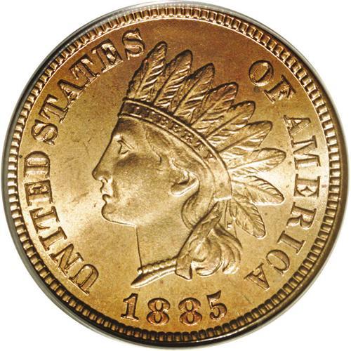 <B>1885<1C> MS65 Red PCGS.</B></I> A sharply struck Gem example with frosty luster on both sides. This is a pleasing example that is elusive in such high grades. A scarce date in the 1880s that is seldom found in any Mint State grade. Population: 45 in 65, 10 finer (4/06).