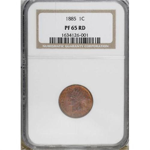 <B>1885 1C PR65 Red NGC.</B></I> An eye-catching Red Gem with traces of magenta against the highly reflective copper-orange fields. Carefully preserved with excellent eye appeal. Census: 4 in 65 Red, 4 finer (10/07).<BR><BR><B>Coin Engraver:</B> James B. Longacre<BR><BR><b>Shipping:</b> Coins & Currency (<a target="_blank" href="http://www.heritageauctions.com/common/shipping.php">view shipping information</a>)