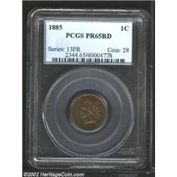 1885 1C PR65 Red PCGS. Opulent red color envelops this proof cent. Both sides are free of distractio