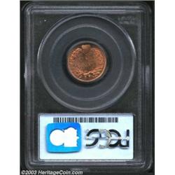1885 1C PR65 Red PCGS. The 1885 is a scarcer issue from the 1880s as only 11.7 million pieces were struck--the lowest production of the decade. This is mostly likely from a conservation of planchet stockpiles forced on the Mint by its inability to locate a source for planchets at a fair price. This is a lovely Gem example. The fields are especially bright and show quite a pronounced semi-prooflike gleam. Sharply struck throughout, the surfaces are bright with the orange-red color displaying just a dab of light blue on the left side of the reverse. Population: 17 in 65, 11 finer (1/03).From the Colburn Collection. Important notice: We expect to be auctioning lots at the rate of 200-250 per hour. On occasion eBay live bid software cannot keep up with the pace of the auctions where 4-5 lots per minute can hammer down, so we recommend that you place a realistic absentee bid now as insurance to avoid disappointment. Also please note that all Heritage/CAA lots purchased through eBay Live carry a 20% Buyer's Premium. Please make sure you read the Terms and Conditions.