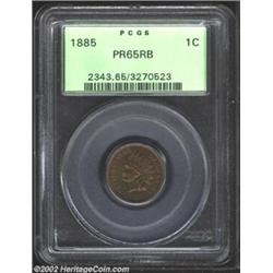 1885 1C PR65 Red and Brown PCGS. Featuring a razor sharp strike and no visible imperfections, this Gem proof specimen displays dazzling violet, orange, lavender, and green iridescence on each side.From the Ohio Collection. Important notice: We expect to be auctioning lots at the rate of 200-250 per hour. Sometimes eBay Premier live bid software cannot keep up with that pace, so we strongly recommend that you place a realistic proxy bid now as insurance to avoid disappointment. Also please note that all Heritage/CAA lots purchased through eBay Premier carry a 20% Buyer's Premium. Please make sure you read the Terms and Conditions.