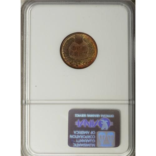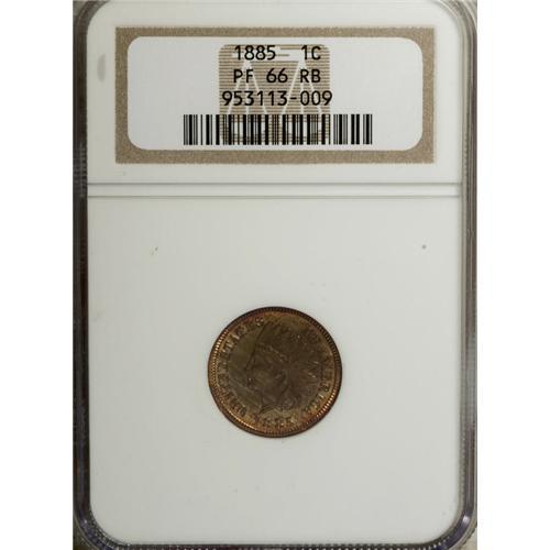 <B>1885 1C PR66 Red and Brown NGC.</B></I> Diagonal obverse streaks of green, orange, and magenta toning complement potent luster and a sharp strike. The reverse retains most of its original fiery orange-red color, and both sides show considerable contrast.<BR><BR><b>Shipping:</b> Coins & Currency (<a target="_blank" href="http://www.heritageauctions.com/common/shipping.php">view shipping information</a>)