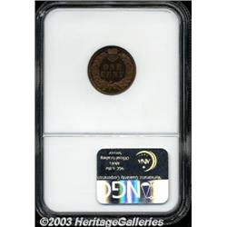1885 1C PR66 Red and Brown NGC. Fully struck with deep red-brown color and seemingly mark-free, spot-free surfaces. There is attractive, rich reflectivity in the fields. Population: 41 in 66, 10 finer (11/03). Important notice: Heritage usually auctions material at the rate of 200-250 lots per hour. On some occasions eBay Live bid software or the Internet may not be able to keep up with the pace of the auction. We recommend placing a realistic absentee bid now as insurance to avoid disappointment. Occasionally the auctioneer may eliminate or reject an eBay Live bid, and the auctioneer may also reopen a lot after the close of the eBay live bidding (usually because we missed an audience bid), and may reject your bid even if it shows you as the winning bidder. By bidding via eBay Live, you agree that Heritage may award the lot to another bidder at its sole discretion under the circumstances described above or any other reasonable circumstances. Also please note that all Heritage lots purchased through eBay Live carry a 20% Buyer's Premium. Please make sure you read the Terms and Conditions before you bid.
