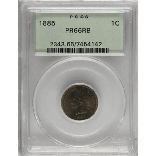<B>1885 1C PR66 Red and Brown PCGS.</B></I> Dusky rose and violet shadings dominate on this exquisitely preserved piece, while a crescent of brighter orange is present at the upper reverse. Decisively struck and delightful. Census: 44 in 66 Red and Brown, 10 finer (7/07).<B><BR></B></I><I>From The Santa Fe Collection.</B></I><BR><BR><B>Coin Engraver:</B> James B. Longacre<BR><BR><b>Shipping:</b> Coins & Currency (<a target="_blank" href="http://www.heritageauctions.com/common/shipping.php">view shipping information</a>)