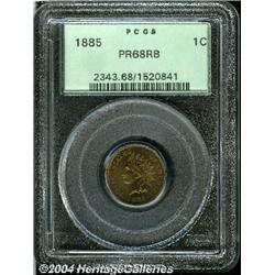 <B>1885<1C> PR68 Red and Brown PCGS.</B></I> The technical preservation of this coin is truly impressive. There are no noticeable contact marks on either side and magnification is required to locate the tiny specks of carbon (look on the lower portion of the obverse, we don't see any flecks elsewhere). The mint luster is bright and rolls around each side undiminished in intensity. The centers display varying degrees of lime-green color while the margins are full mint red. An outstanding coin in terms of both technical preservation as well as visual appeal. Population: 2 in 68, 0 finer (9/04). <BR><BR><B>Important notice:</B> Heritage usually auctions material at the rate of 200-250 lots per hour. On some occasions eBay Live bid software or the Internet may not be able to keep up with the pace of the auction. We recommend placing a realistic absentee bid now as insurance to avoid disappointment. Occasionally the auctioneer may eliminate or reject an eBay Live bid, and the auctioneer may also reopen a lot after the close of the eBay live bidding (usually because we missed an audience bid), and may reject your bid even if it shows you as the winning bidder. By bidding via eBay Live, you agree that Heritage may award the lot to another bidder at its sole discretion under the circumstances described above or any other reasonable circumstances. Since eBay bids are not shown to us until we open the lot on the floor, we treat those bids just like floor bids. In most cases the floor responds before the eBay bid is presented to us, due to Internet lag time, so for consistency we have made it a policy that floor bids are always considered first over tie eBay live bids. Also please note that all Heritage lots purchased through eBay Live carry a 20% Buyer's Premium. Please make sure you read the Terms and Conditions before you bid.