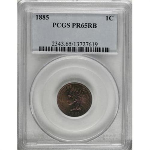<B>1885 1C PR65 Red and Brown PCGS.</B></I> PCGS Population (93/47). NGC Census: (54/54). Mintage: 3,790. Numismedia Wsl. Price for NGC/PCGS coin in PR65: $300. (#2343)<BR><BR><B>Coin Engraver:</B> James B. Longacre<BR><BR><b>Shipping:</b> Coins & Currency (<a target="_blank" href="http://www.heritageauctions.com/common/shipping.php">view shipping information</a>)