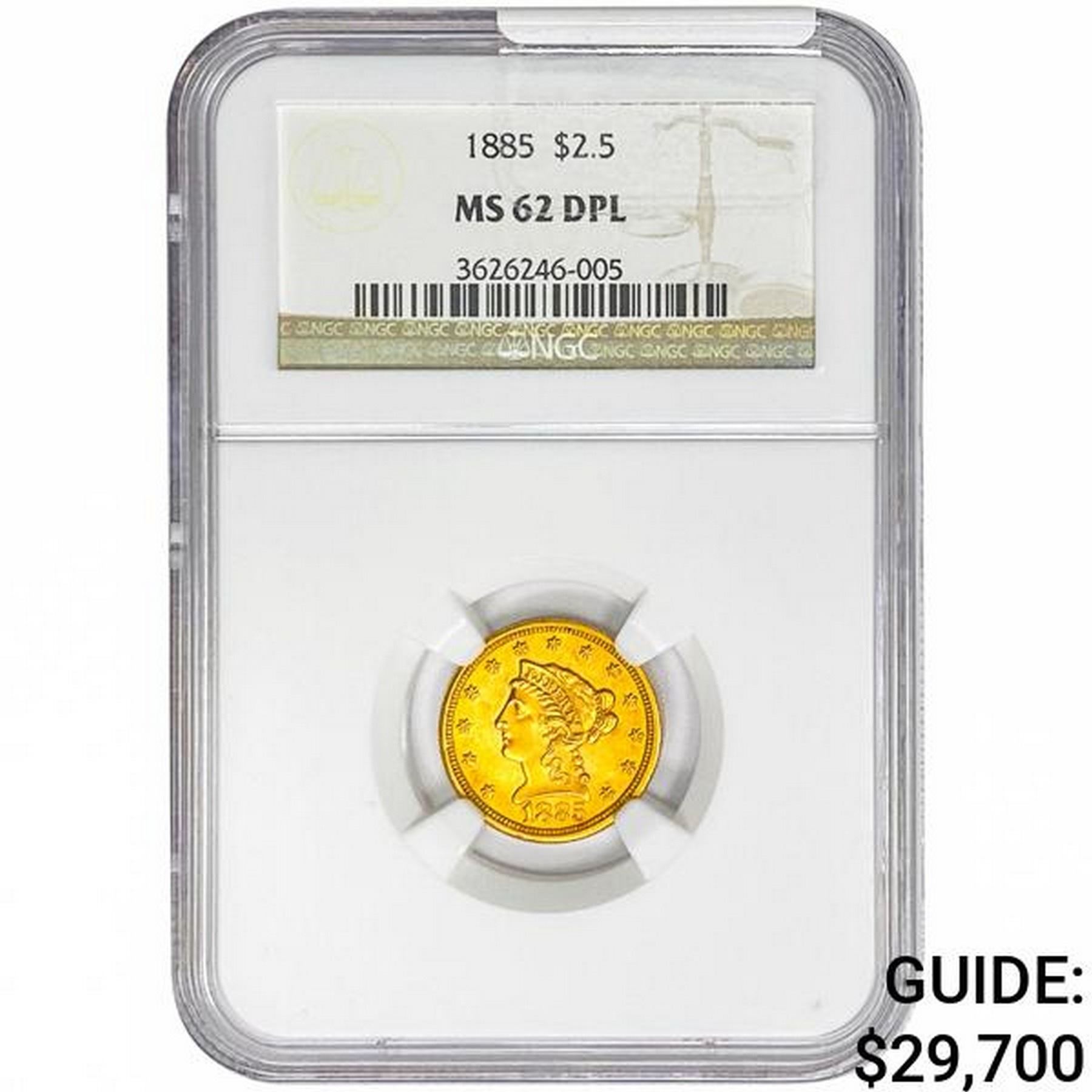 1885 $2.50 Gold Quarter Eagle NGC MS62 DPL