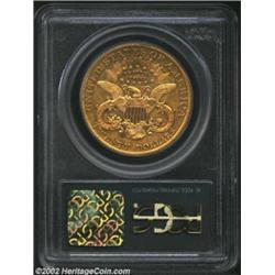 1885 $20 AU50 PCGS. While not quite as difficult to obtain as the 1881, 1882, and 1886, the 1885 is still a rare issue with just 828 pieces produced. Most of the 36 or so examples believed extant fall into either the XF or low AU grade ranges. The present representative is solidly graded in AU50 with plenty of sharp striking definition still in evidence. Remnants of a semi-prooflike finish flicker as the coin rotates under the light, this despite a smattering of mostly light abrasions. We stress that none of the latter features are out of context with the assigned grade, and the color is a deep, rich blend of original olive-gold and copper-gold shades. We have handled only two other AU50 PCGS 1885 Twenties over the past 11 years, the most recent of which realized $14,950 as lot 7238 in our February 2001 Long Beach Signature Sale. Important notice: We expect to be auctioning lots at the rate of 200-250 per hour. Sometimes eBay Premier live bid software cannot keep up with that pace, so we strongly recommend that you place a realistic proxy bid now as insurance to avoid disappointment. Also please note that all Heritage/CAA lots purchased through eBay Premier carry a 20% Buyer's Premium. Please make sure you read the Terms and Conditions.