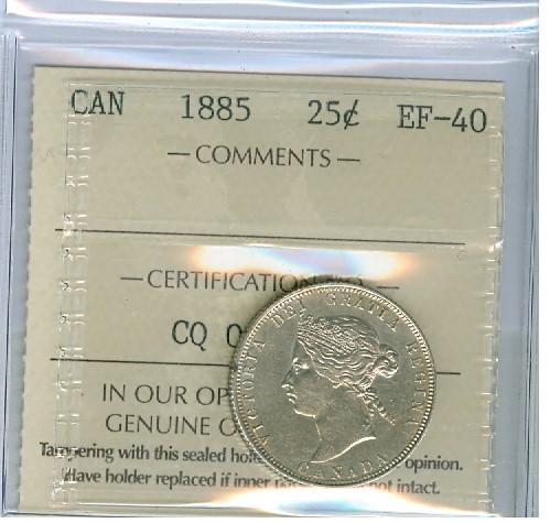 1885 25¢ ICCS EF50. Key issue white w/light lustre.