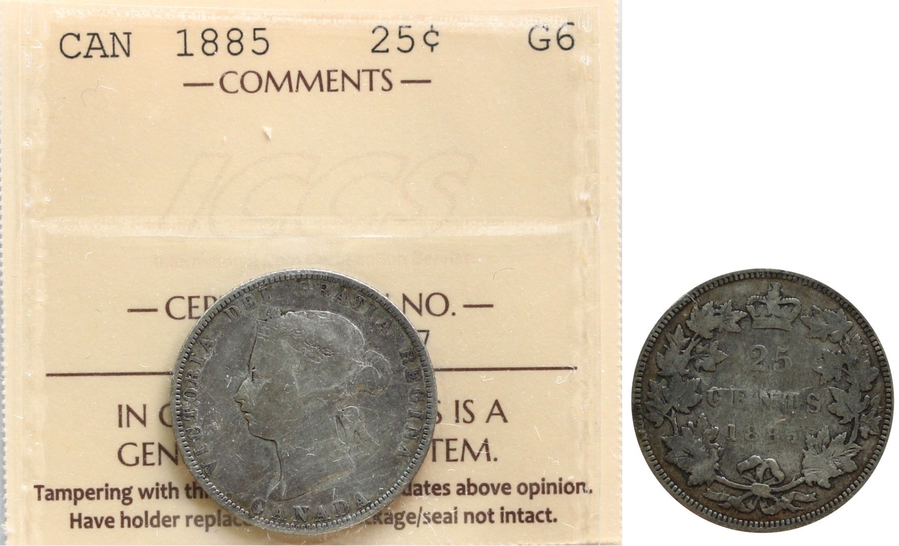 1885 25¢ ICCS Good-6 Key date.