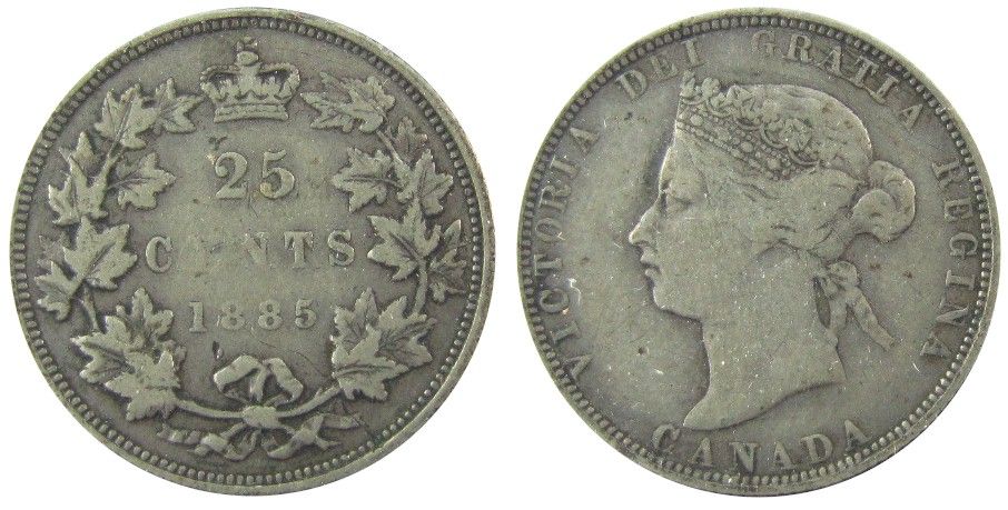 1885 25¢ key date in Fine+ grade. (PBA).