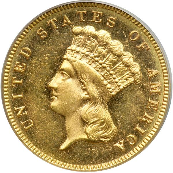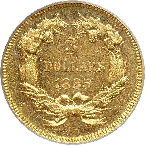 1885. PCGS graded MS-62 CAC Approved. Well struck with glittering prooflike fields. Rare low mintage date as a mere 801 were struck. The cataloger is expected to describe his Lots in restrained, modest language but in this instance, the coin is a blow-out first choice for any buyer who is looking for extremely low-mintage gold issues in desirable Mint condition. Pop 21; 57 finer (PCGS # 8007) .