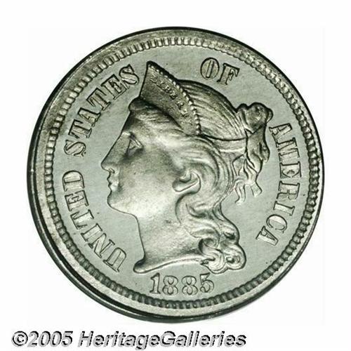 1885 3C Three Cent Nickel, Judd-1741, Pollock-195