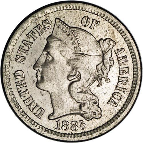 1885 3CN PR64 NGC. Warm golden-gray toning. The device 1885[3CN] PR64 NGC.