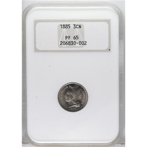 1885 3CN PR65 NGC. NGC Census: (268/164). PCGS Pop