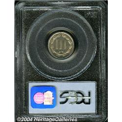<B>1885<3CN> PR66 Cameo PCGS.</B></I> Streaks of tan patina embrace this moderately mirrored and unabraded specimen. Well struck except for the upper obverse denticles. Although not a proof-only date, just 1,000 business strikes were issued. Population: 23 in 66, 5 finer (9/04). <BR><BR><B>Important notice:</B> Heritage usually auctions material at the rate of 200-250 lots per hour. On some occasions eBay Live bid software or the Internet may not be able to keep up with the pace of the auction. We recommend placing a realistic absentee bid now as insurance to avoid disappointment. Occasionally the auctioneer may eliminate or reject an eBay Live bid, and the auctioneer may also reopen a lot after the close of the eBay live bidding (usually because we missed an audience bid), and may reject your bid even if it shows you as the winning bidder. By bidding via eBay Live, you agree that Heritage may award the lot to another bidder at its sole discretion under the circumstances described above or any other reasonable circumstances. Since eBay bids are not shown to us until we open the lot on the floor, we treat those bids just like floor bids. In most cases the floor responds before the eBay bid is presented to us, due to Internet lag time, so for consistency we have made it a policy that floor bids are always considered first over tie eBay live bids. Also please note that all Heritage lots purchased through eBay Live carry a 20% Buyer's Premium. Please make sure you read the Terms and Conditions before you bid.
