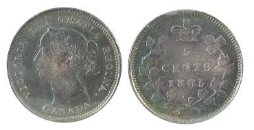 1885 5¢ 5/5 ICCS AU58, rare in this condition. Superbly toned.