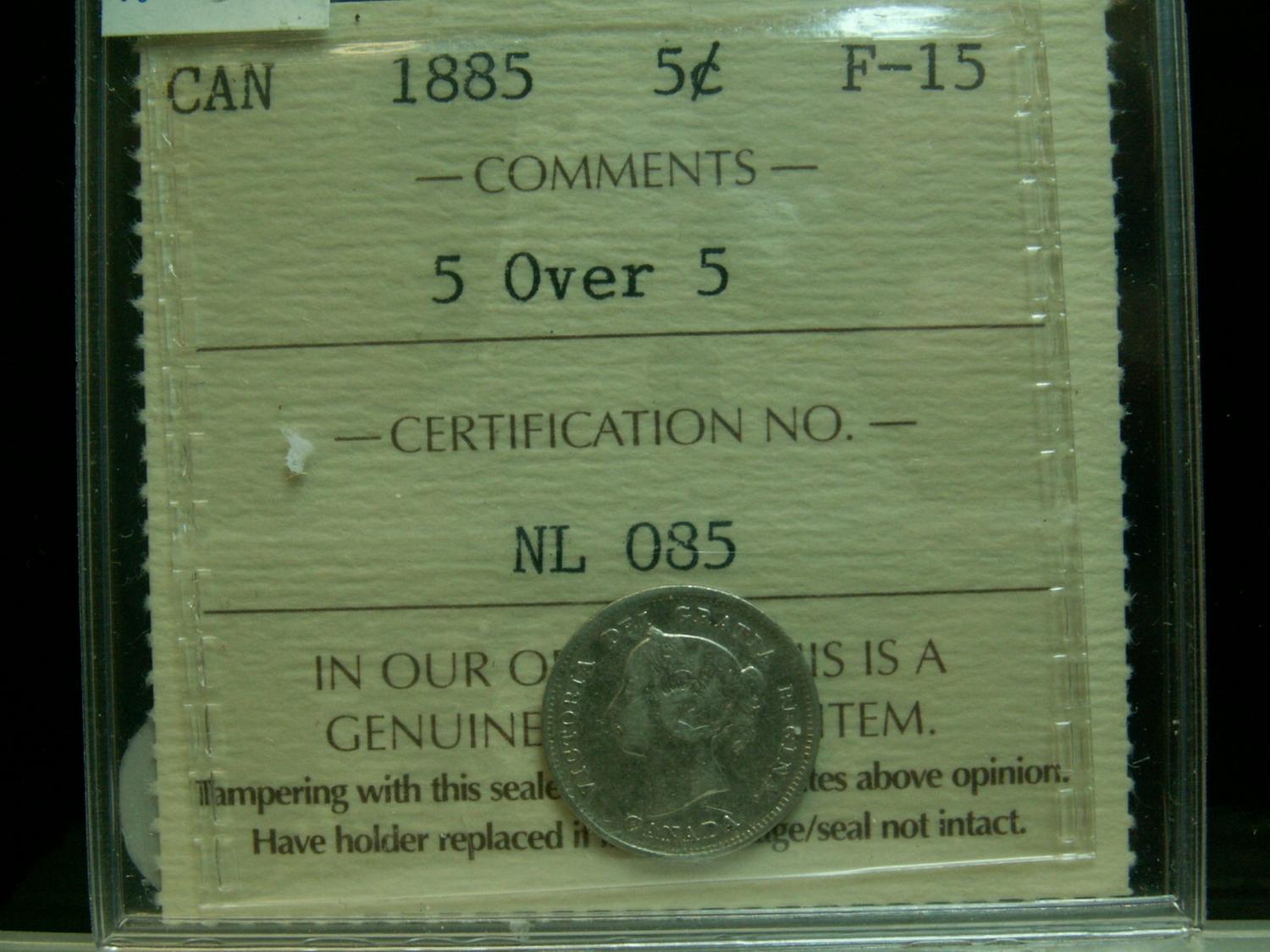 1885 5¢ 5 over 5 ICCS F15