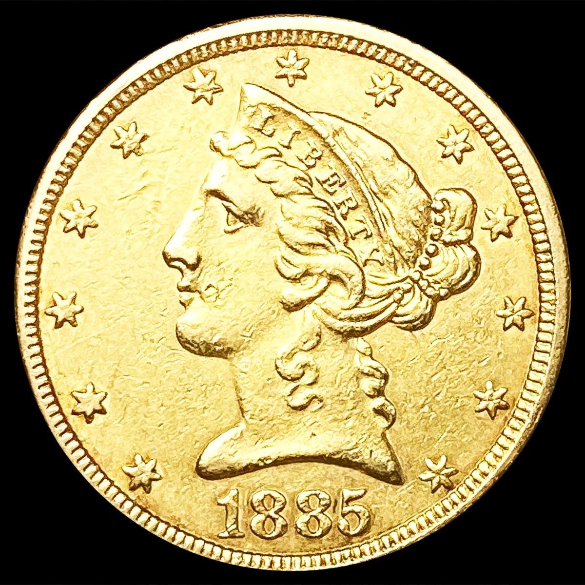 1885 $5 Gold Half Eagle ABOUT UNCIRCULATED