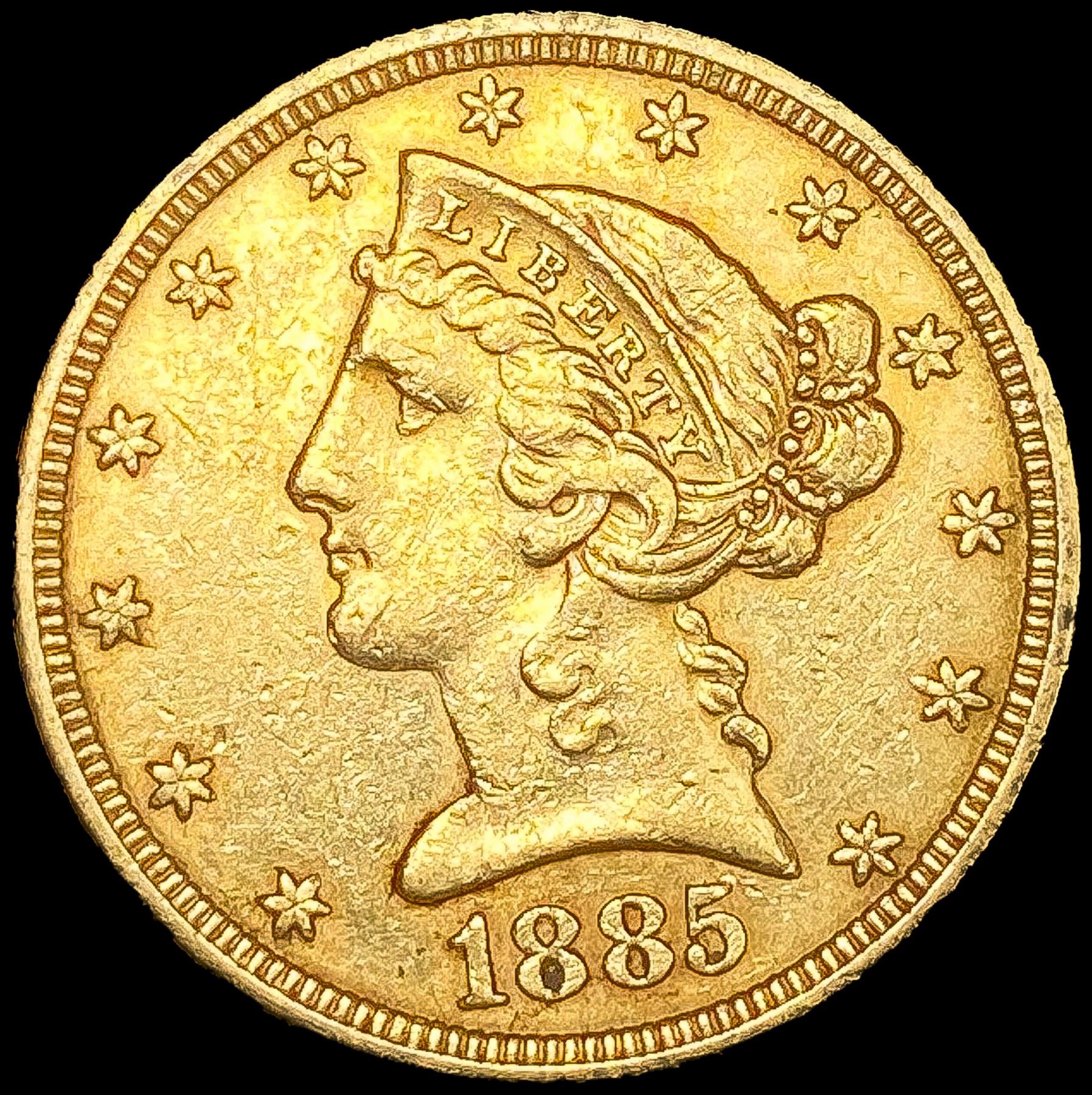 1885 $5 Gold Half Eagle CLOSELY UNCIRCULATED