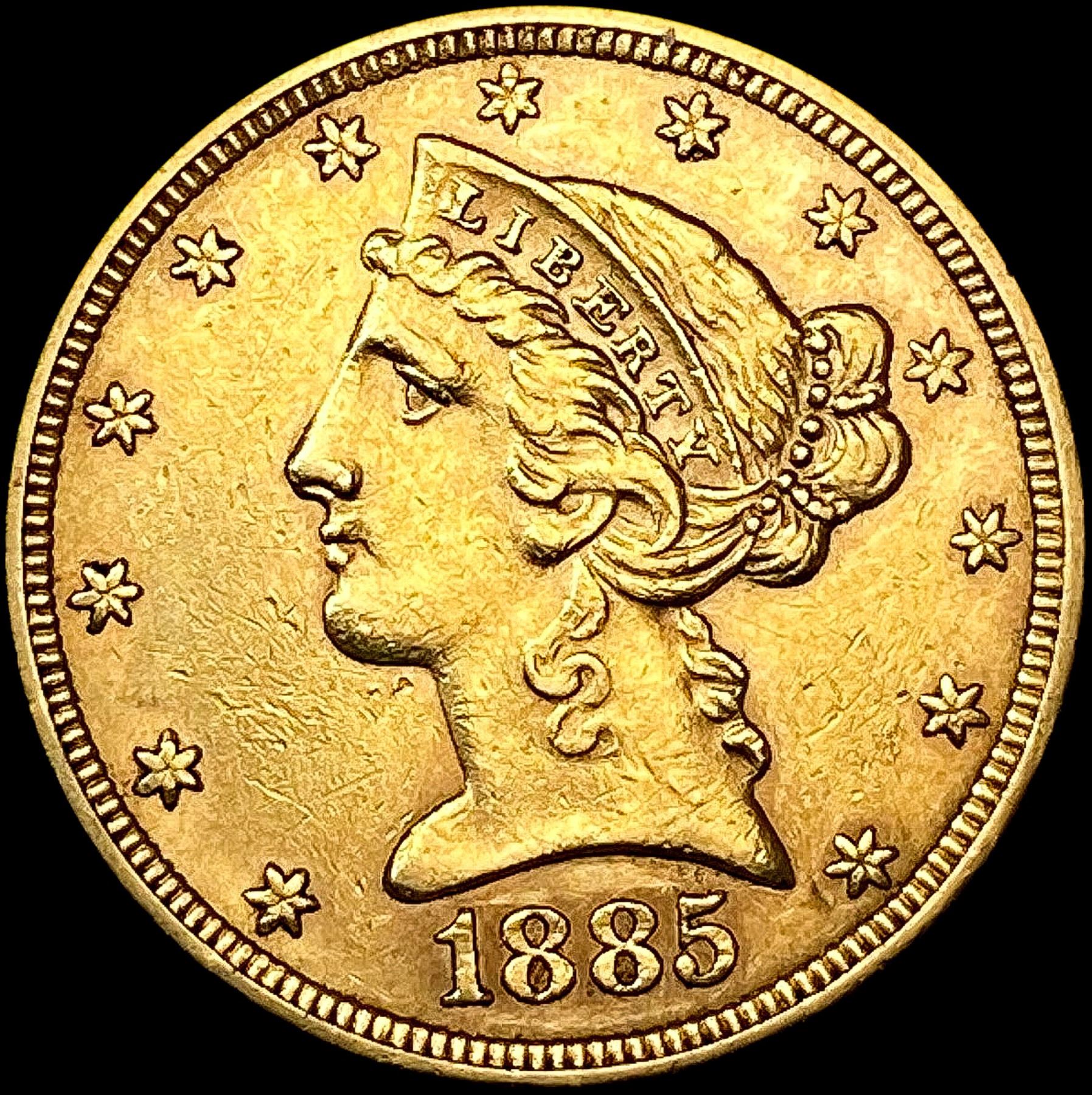 1885 $5 Gold Half Eagle CLOSELY UNCIRCULATED