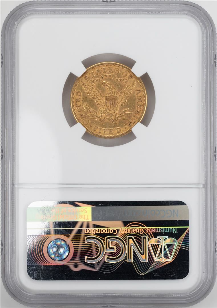 One 1885 $5 Liberty Head Half Eagle Gold Coin NGC AU53. NGC Certified.