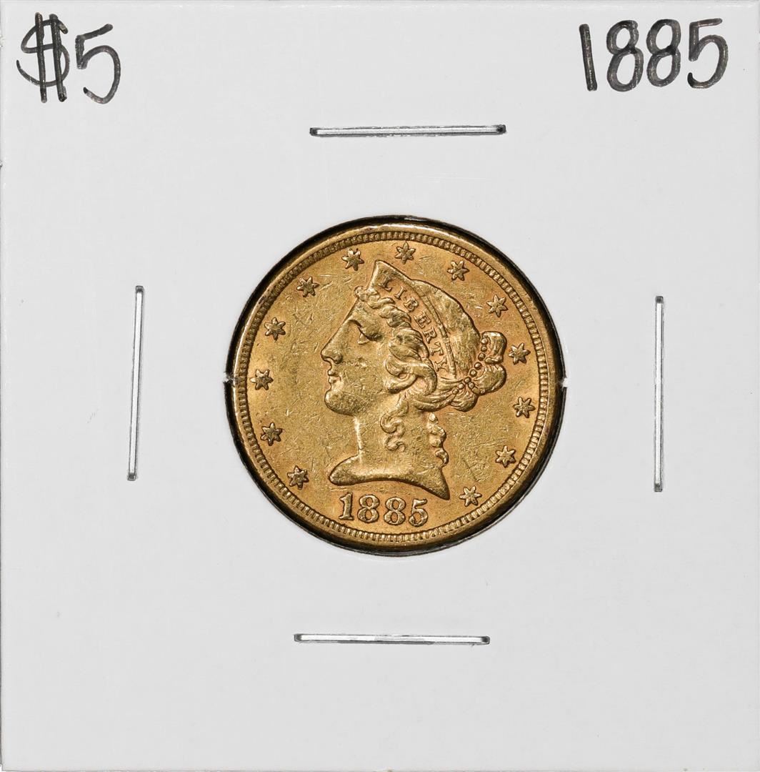 One 1885 $5 Liberty Head Half Eagle Gold Coin.