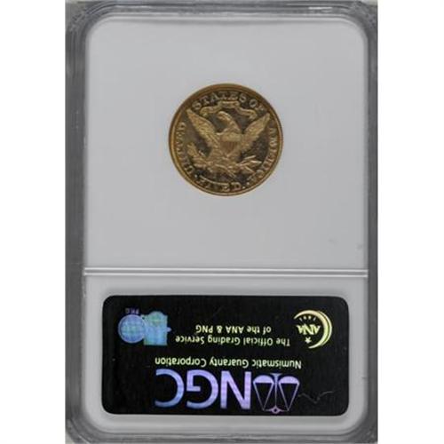 <B>1885 $5 MS63 Prooflike NGC.</B></I> Sharply struck with distinctly reflective and flashy yellow-gold fields. This Gilded Age half eagle has light, scattered abrasions that account for the grade. Census: 3 in 63 Prooflike, 0 finer (10/07).<BR><BR><B>Coin Engraver:</B> Christian Gobrecht<BR><BR><b>Shipping:</b> Coins & Currency (<a target="_blank" href="http://www.heritageauctions.com/common/shipping.php">view shipping information</a>)