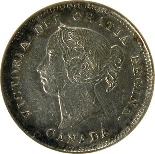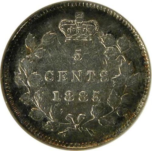 Canada Five Cents 1885 5 Over 5, ANACS AU details, Cleaned, Net EF-40. Lightly toned