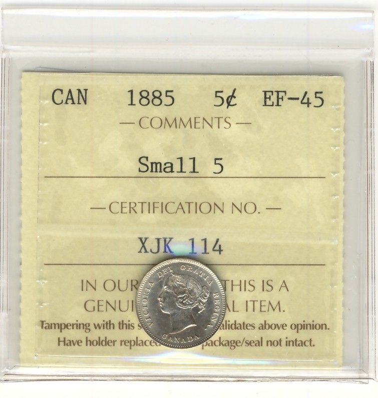 1885 5¢ Sml 5 ICCS EF45. Bright lustre, looks better.