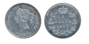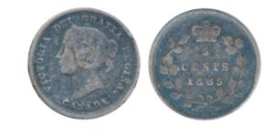 1885. 5 over 5 variety. ICCS Fine-12; 1887. ICCS Very Fine- 20. Lot of two (2) scarce date coins.