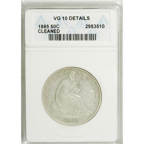 1885 50C --Cleaned--ANACS. VG10 Details. NGC Census