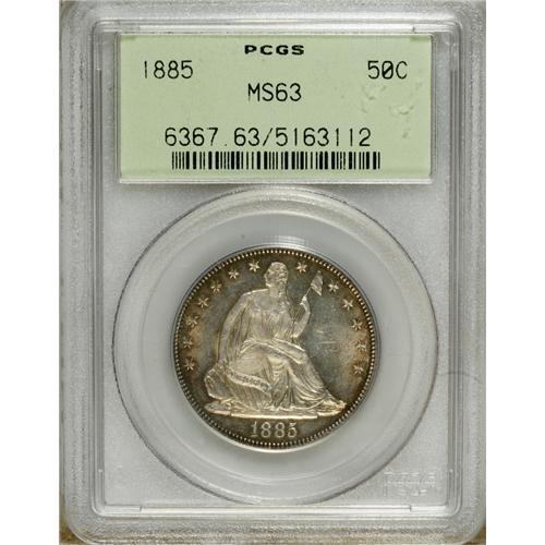 <B>1885 50C MS63 PCGS.</B></I> Lovely golden-brown borders frame the untoned fields and devices. A crisply struck and moderately prooflike example of this popular ultra-low mintage issue. Housed in a green label PCGS holder. Population: 18 in 63, 28 finer (1/07).<BR><BR><b>Shipping:</b> Coins & Currency (<a target="_blank" href="http://www.heritageauctions.com/common/shipping.php">view shipping information</a>)