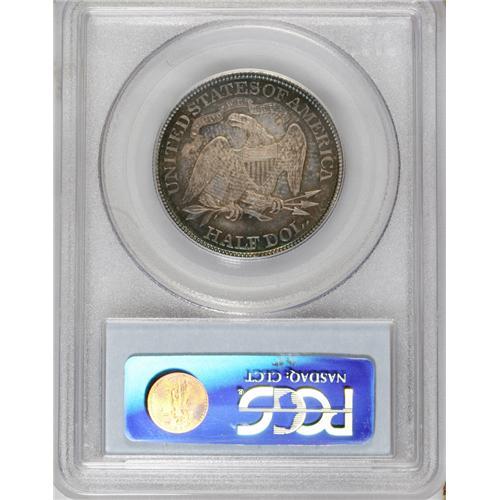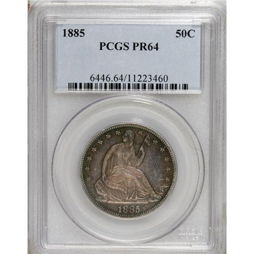 <B>1885 50C PR64 PCGS.</B></I> A Choice and exquisitely struck specimen. Blue and rose-orange rings surround dove-gray centers, though the center of the reverse has toning in a fingerprint pattern.<BR><BR><b>Shipping:</b> Coins & Currency (<a target="_blank" href="http://www.heritageauctions.com/common/shipping.php">view shipping information</a>)