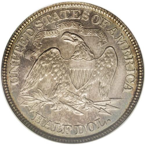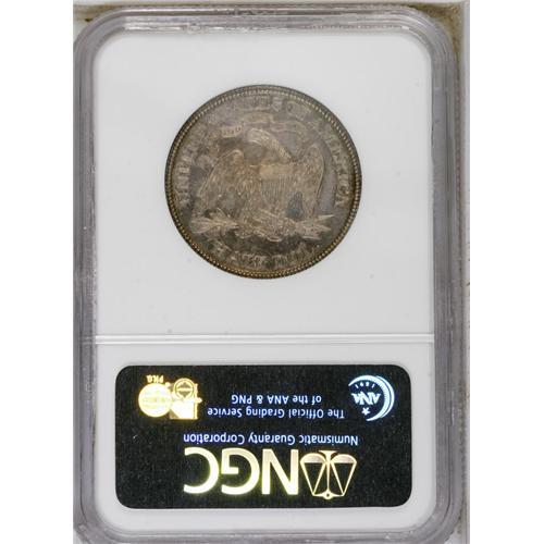 1885 50C PR66 NGC. Orange-red, lavender, and gold ador