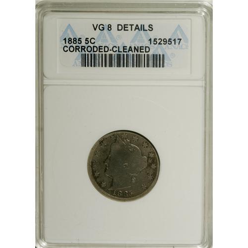 1885 5C --Cleaned, Corroded--ANACS. VG8 Details. NG