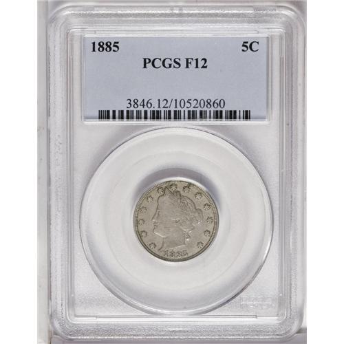 <B>1885<5C> Fine 12 PCGS.</B></I> The undisputed key date to the popular Liberty nickel series. This example is moderately worn with bluish-gray color and a few minor abrasions on the reverse.