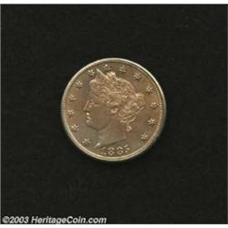 1885 5C MS60 Uncertified. Wisps of faint apricot-gold color endow the centers. Boldly struck aside f