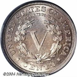 <table><tr><td><table><tr><td>1885 5C MS64 PCGS. Boldly struck in all areas and overlaid in blushes of pale orange and olive-gold patina. Long recognized as the key to the Liberty Nickel series. <BR><BR><B>Important notice:</B> Heritage usually auctions material at the rate of 200-250 lots per hour. On some occasions eBay Live bid software or the Internet may not be able to keep up with the pace of the auction. We recommend placing a realistic absentee bid now as insurance to avoid disappointment. Occasionally the auctioneer may eliminate or reject an eBay Live bid, and the auctioneer may also reopen a lot after the close of the eBay live bidding (usually because we missed an audience bid), and may reject your bid even if it shows you as the winning bidder. By bidding via eBay Live, you agree that Heritage may award the lot to another bidder at its sole discretion under the circumstances described above or any other reasonable circumstances. Since eBay bids are not shown to us until we open the lot on the floor, we treat those bids just like floor bids. In most cases the floor responds before the eBay bid is presented to us, due to Internet lag time, so for consistency we have made it a policy that floor bids are always considered first over tie eBay live bids. Also please note that all Heritage lots purchased through eBay Live carry a 20% Buyer's Premium. Please make sure you read the Terms and Conditions before you bid. <BR><BR><B>IMPORTANT ANNOUNCEMENT ABOUT RESERVES:</B> Heritage now divulges all reserves on its web site 7 days before every auction. If you want to know whether the reserve on this lot has been met, and if not, what the reserve amount is, please visit this lot page on the HeritageCoin.com web site, or email: bid@HeritageGalleries.com </span></font></td></tr></table></td></tr></table>
