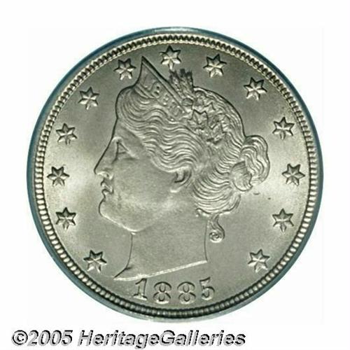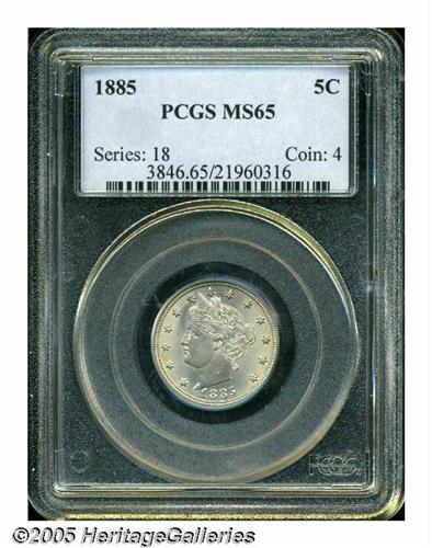 1885 5C MS65 PCGS. Minted in small quantities, ye