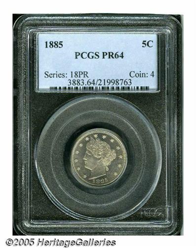 1885 5C PR64 PCGS. Pretty, near-Gem proof with ve