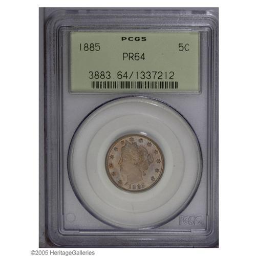 <B>1885<5C> PR64 PCGS.</B></I> There is moderate gray-rose iridescence on both sides of the moderately reflective example. Sharply struck with remarkably few distractions for the grade.