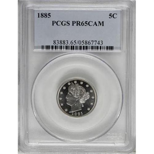 <B>1885 5C PR65 Cameo PCGS.</B></I> A gleaming example of perhaps the most popular proof Liberty nickel issue, flashy and minimally toned with undeniable contrast. A boldly struck and wonderful Gem. Population: 21 in 65 Cameo, 34 finer (1/08).<BR><BR><b>Shipping:</b> Coins & Currency (<a target="_blank" href="http://www.heritageauctions.com/common/shipping.php">view shipping information</a>)