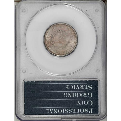<B>1885<5C> PR65 PCGS.</B></I> Certified in a first generation holder and attractively toned in pastel pink and gold. An occasional minute carbon fleck does not distract. For those who shy away from the expense of a Gem Mint State example of the key date, the proofs of this issue offer a fine substitute.